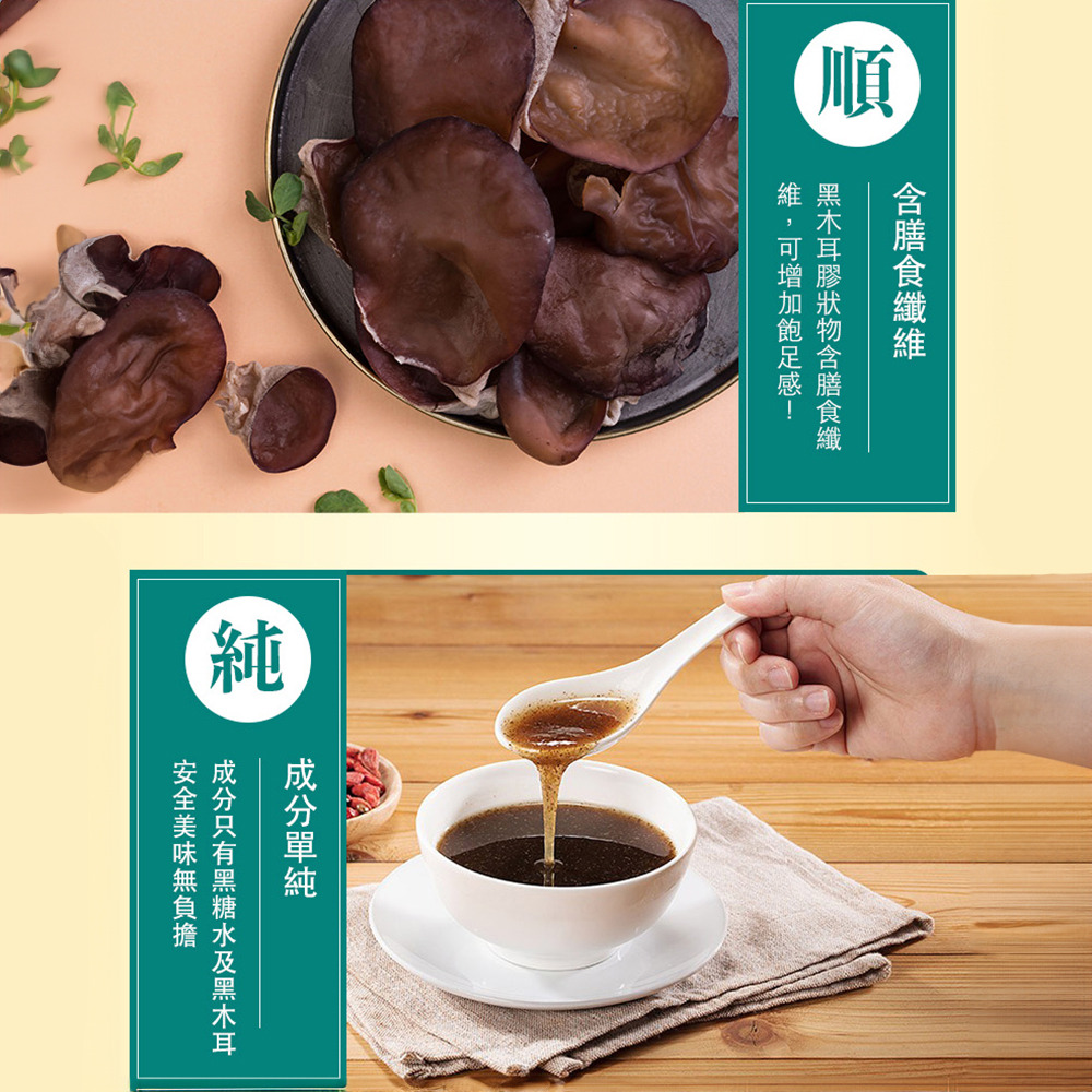 商品成份:黑糖、水、有機白背黑木耳。