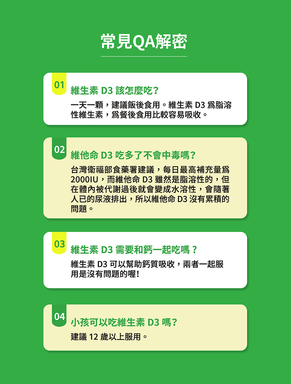 商品成分:中鏈三酸甘油酯、膠皮(明膠、甘油、純水)、DSM維生素D3(中鏈三酸甘油酯、維生素D3、生育醇(抗氧化劑)