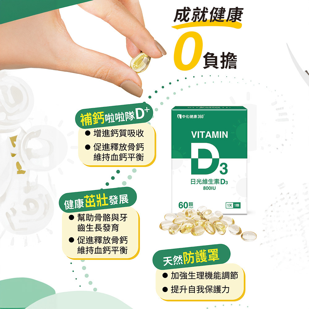 商品名稱:中化健康360 日光維生素D3軟膠囊