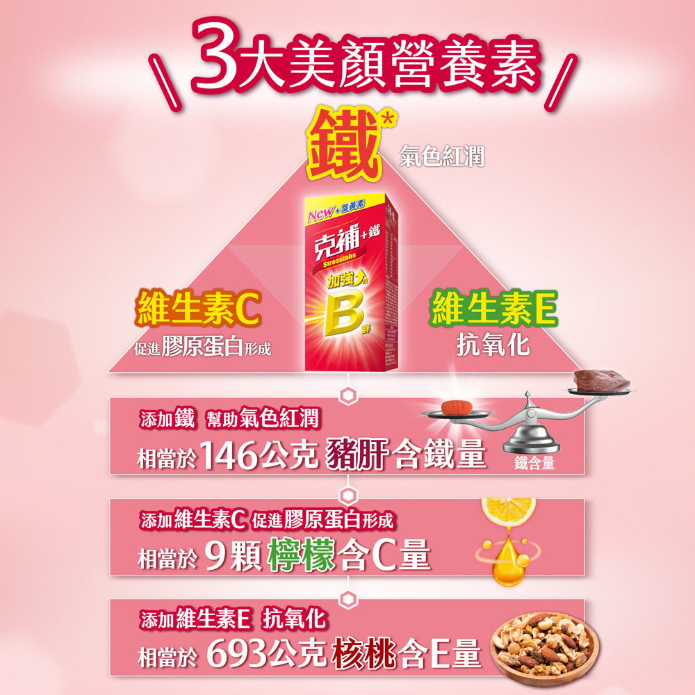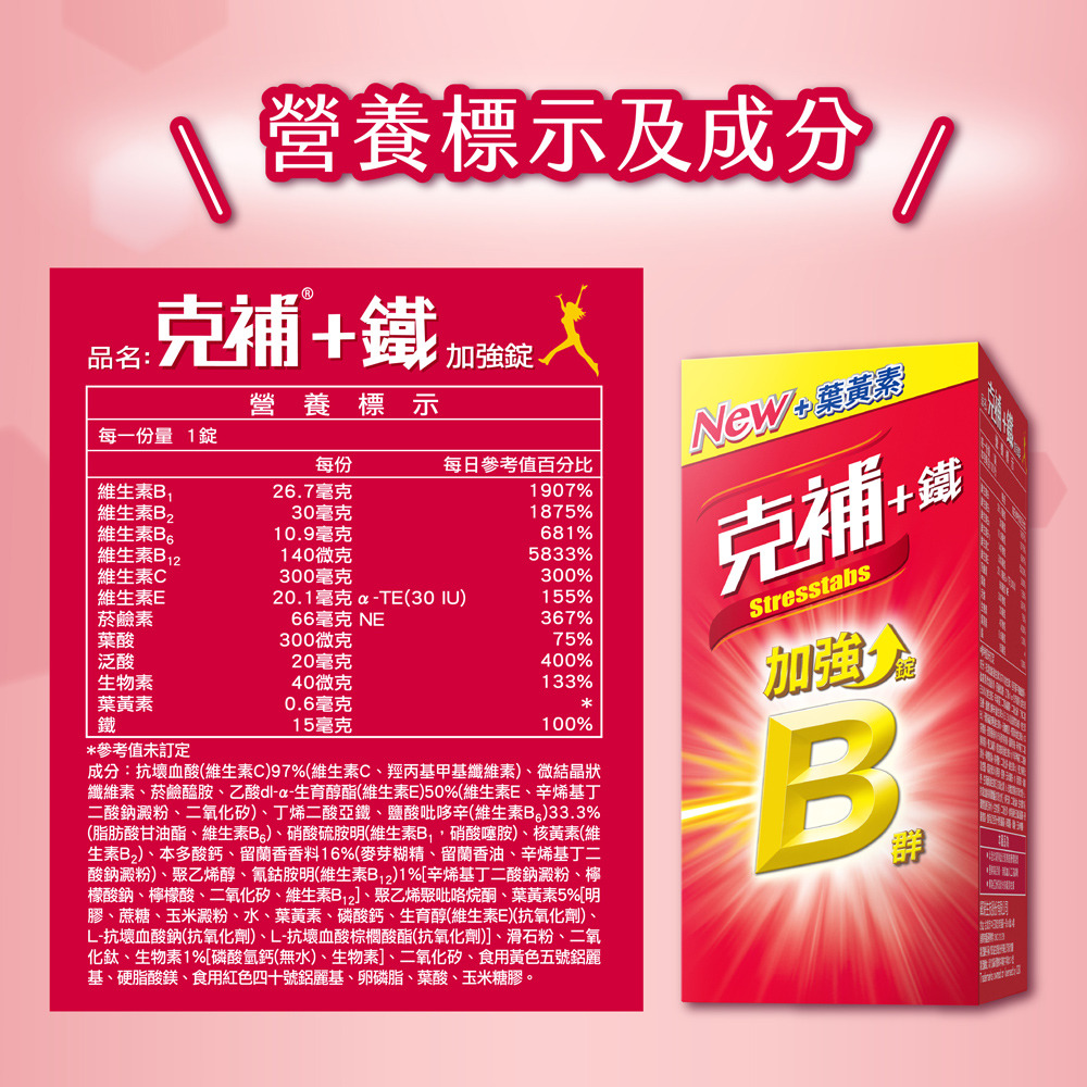 商品名稱:克補B群+鐵加強錠