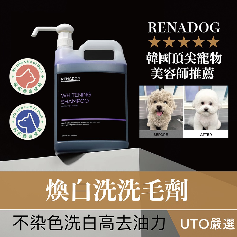 UTO嚴選|RENADO 樂納朵 煥白洗洗毛劑 白毛狗專用 韓國進口 韓國頂尖寵物美容師首選 寵物美容 護毛